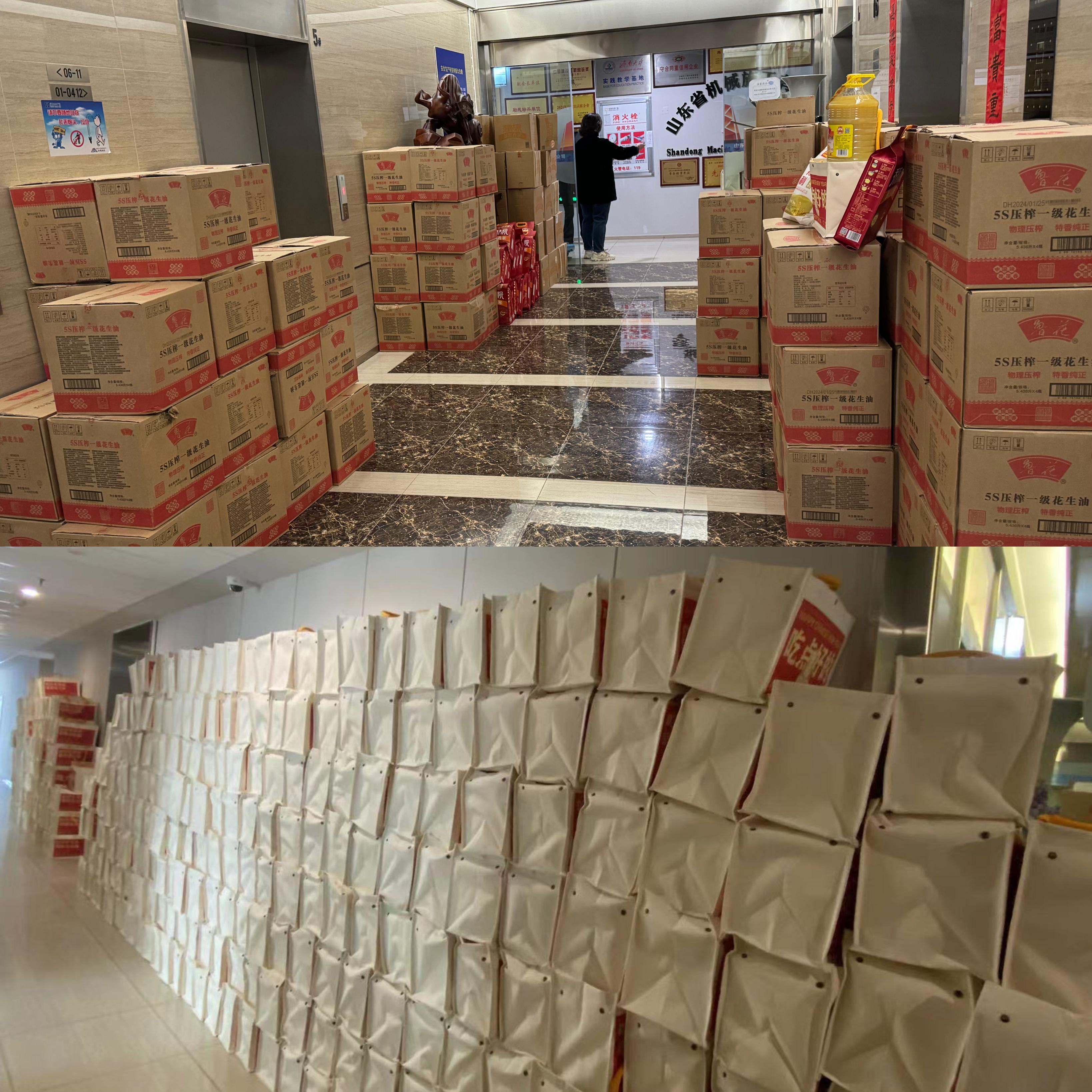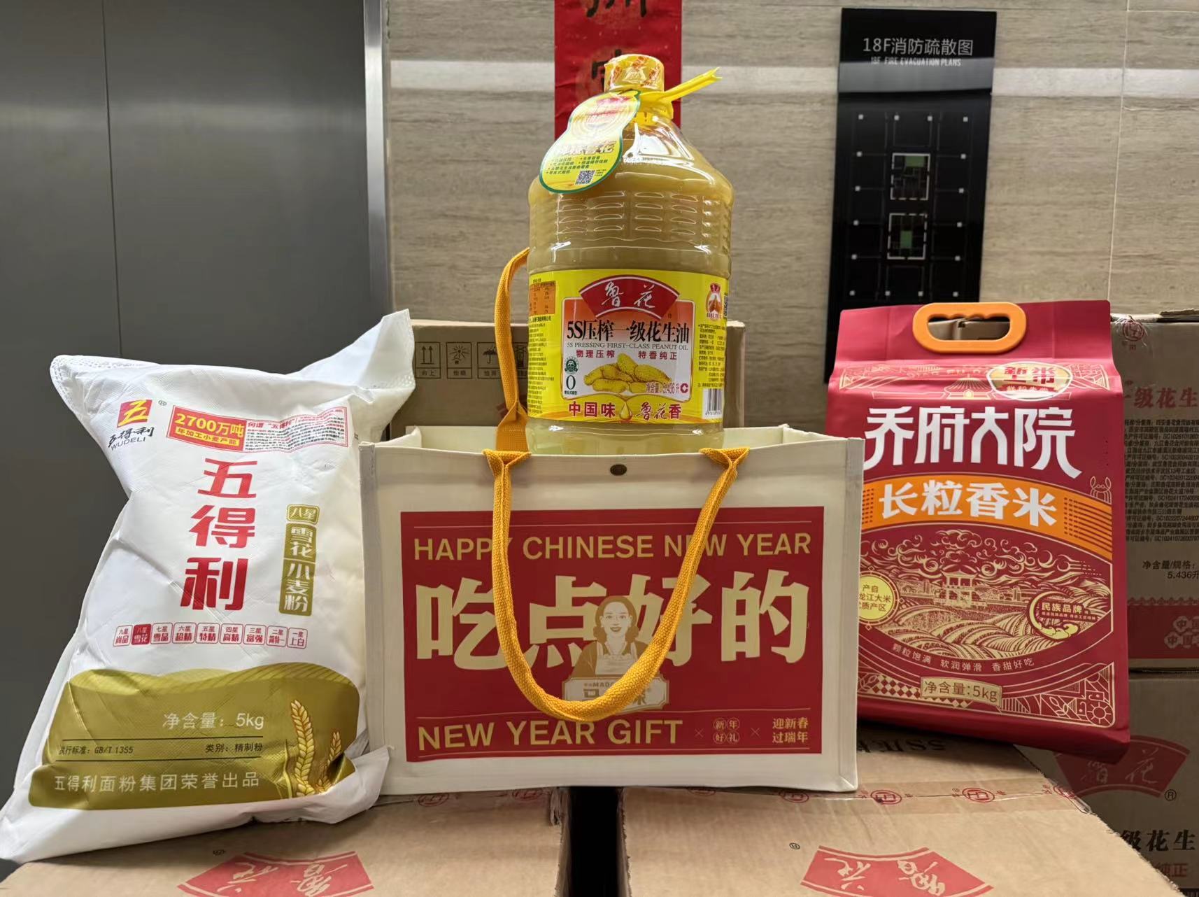 花生油、牛肉腸、面粉、大米,一份份福利飽含著公司對(duì)員工們濃濃的關(guān)愛之情,也寄托著真摯的新春祝福,極大地提升了職工的幸福指數(shù)。
