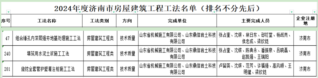 山東省機(jī)械施工有限公司3項(xiàng)工法獲評 “濟(jì)南市房屋建筑工程工法”